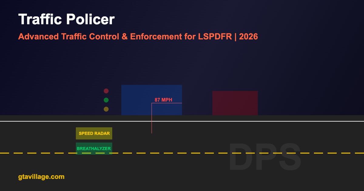 Traffic Policer adds realistic traffic enforcement tools to LSPDFR, including speed radar, breathalyzer tests, traffic citations, and enhanced pursuit mechanics. It transforms routine traffic stops into detailed, immersive police procedures.