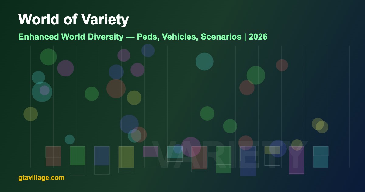 World of Variety is a massive overhaul mod that dramatically increases the diversity of pedestrians, vehicles, scenarios, and ambient events in GTA 5. It makes the game world feel more alive and varied without replacing any vanilla content.
