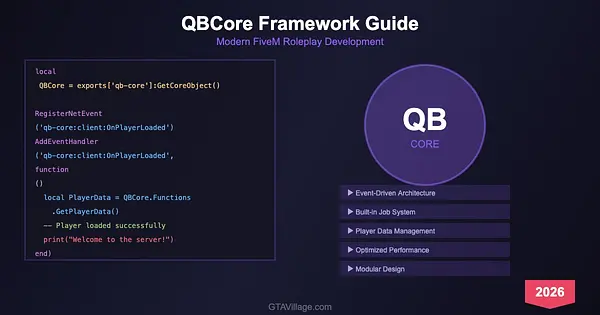 Master the QBCore framework and build a professional FiveM roleplay server with this comprehensive development guide for GTA 5 in 2026. This tutorial covers QBCore architecture, core functions, player data management, job systems, event handling, and resource development best practices — everything a server developer needs to create, customize, and maintain a high-quality RP experience.