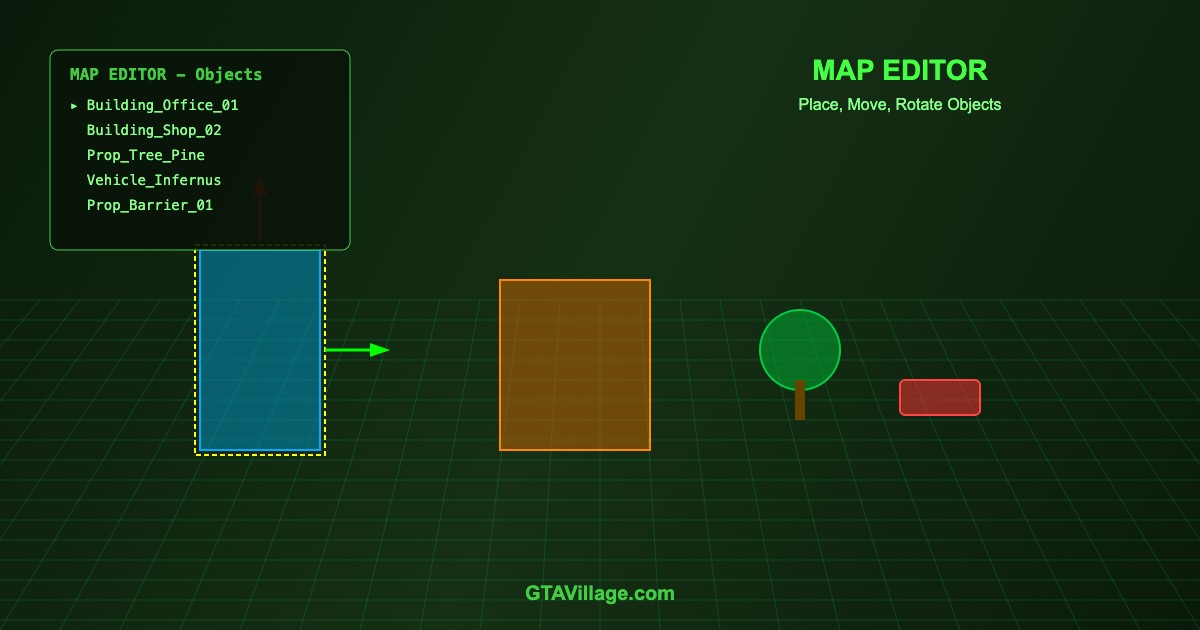 Map Editor mods let you place, move, and rotate objects anywhere in GTA 5 to create custom locations, race tracks, bases, and more. This guide covers Menyoo and Map Editor usage.