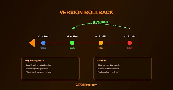 When Rockstar updates GTA 5, Script Hook V and many mods break until updated. Downgrading lets you keep modding while waiting for compatibility patches. This guide covers all downgrade methods.