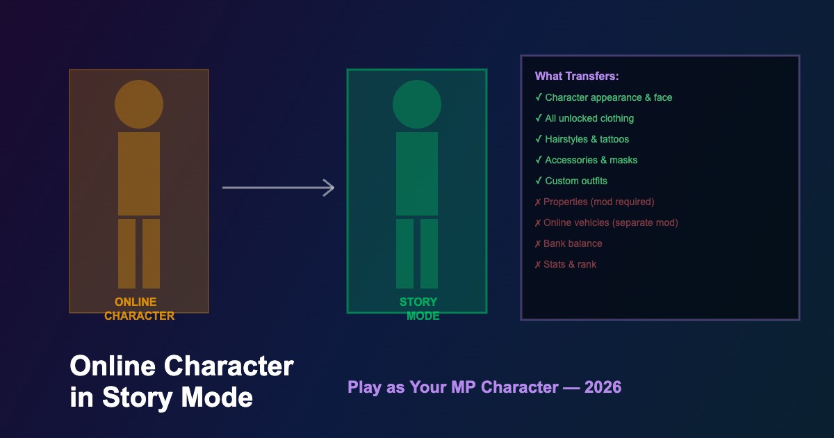 Use mods to bring your GTA Online character into Story Mode with all clothing, tattoos, and accessories intact. This 2026 guide covers the best methods and mods.